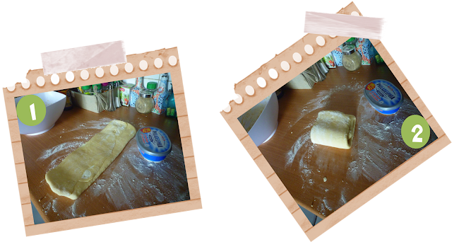 Lorsque la pate est bien gonflée, repliez là sur elle même pour chasser les bulles d’air et placez au frais toute la nuit.Le lendemain, étalez la pâte en un rectangle de 1 cm d’épaisseur. Etalez le philadelphia, repliez la pate sur elle même en trois parties et re-étalez la. repliez de nouveau en trois partie et étalez rectangle de 1 cm d’épaisseur.