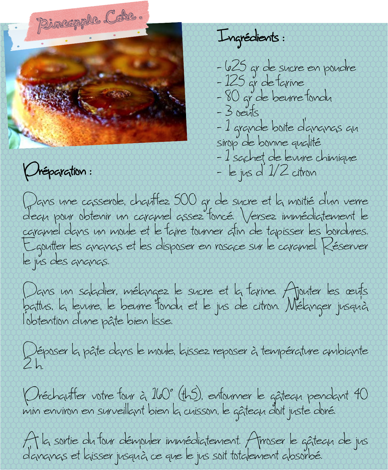 Pour ne pas conclure sur du négatif, je vous donne ma recette du gâteau à l’ananas renversé, elle est issue du blog de Louna.